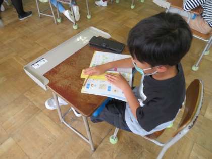 ALTの先生の発音を参考にしながら、天気に合う遊び方を見付けています。