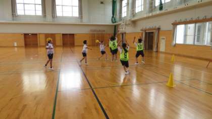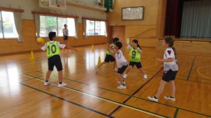 空いているスペースに動いてパスをつなげ、シュートすることを考えながらゲームを行っています。