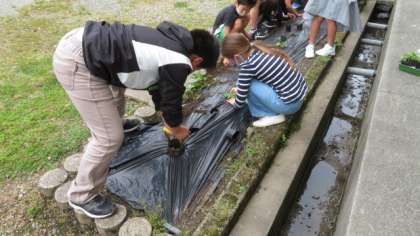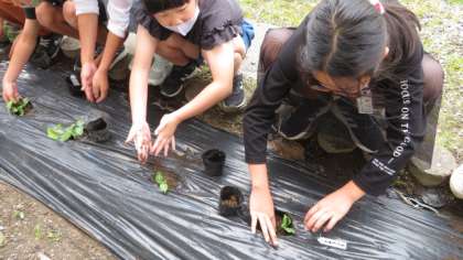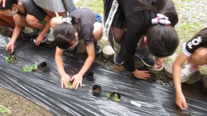 4年生はヘチマを牛乳パックから農園に植え替えました。