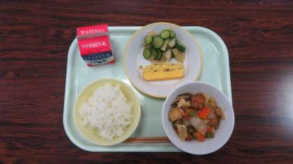 ごはん 酢豚 かふうあえ えごまいり卵焼き でした。