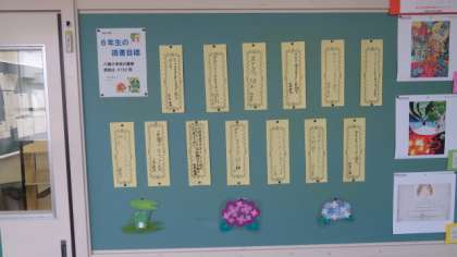 5月27日(木) 6年 読書のめあて 公開日 2021/05/27 更新日 2021/05/27 図書室から 図書館オリエンテーション後、66年生は今年の読書のめあてを書きました。図書室の廊下側に掲示してあります