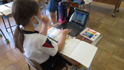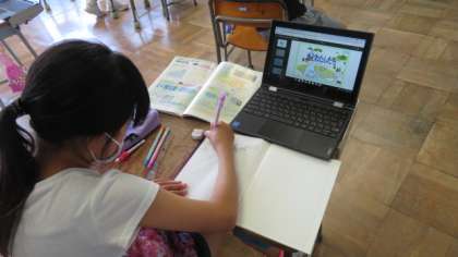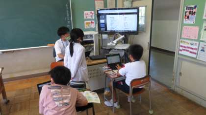 先生が準備した富山市上下水道局の資料を、一人一人のPCに貼り付け、いつでも見ることができるようにしました。