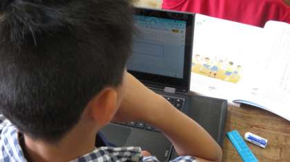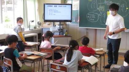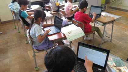 「ドンマイ!」一緒に一生懸命サッカーの練習をしたけれど、ゲーム中にミスをしてしまった友達に対する行動を巡り、そのときの気持ちについて話し合いました。授業後の感想は、PCに書き込み、保存しています。
