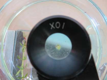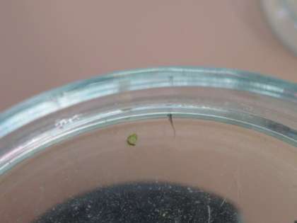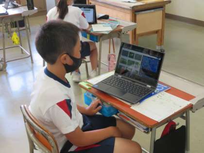 メダカは受精卵からどのように成長していくのか、PCの動画を見ながら調べていました。その授業時間中に、何と、教室で育てていた卵の一つがかえりました。動画と同じような小さな稚魚がペトリ皿の中を泳いでいるのを見て、感動しました。小さな命が生まれた素敵な瞬間でした。