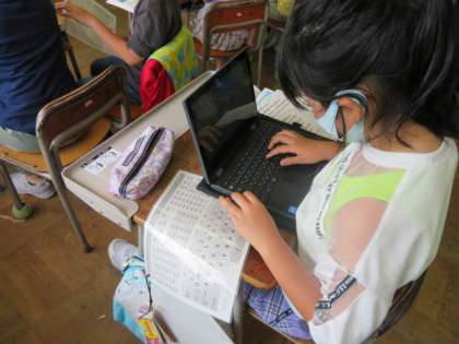 資料にある絵地図や写真から読み取れることを、PCにまとめました。方位や施設の名称や数等に目を付けながら具体的に分かりやすく表現しようとしています。