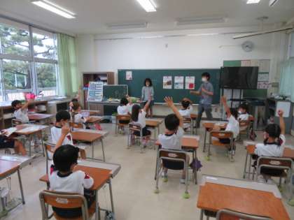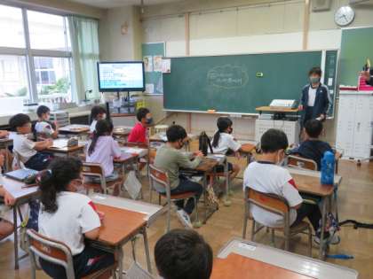 今日から4のつく日の朝活動の時間に、保健委員会が「ハンカチ、ティッシュ、名札、マスク」を身に付けているか四つ葉で四つ葉デーがスタートしました。今日は2年生が100%でした。