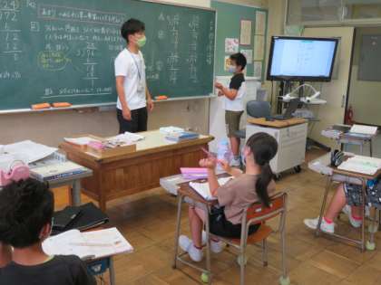 あまりの出る割り算の筆算の仕方のどこが間違っているのか、自分の言葉で一生懸命説明していました。