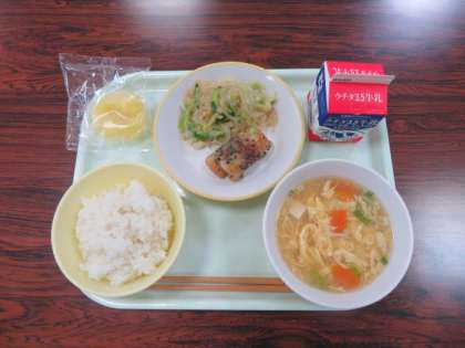 ごはん かき玉汁 ちくわのなんぶ揚げ 春雨サラダ 冷凍りんご