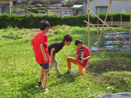 虫かごの中で、さなぎの姿で過ごしていたたくさんのモンシロチョウが、ふ化したので、自然の中へ戻してあげました。モンシロチョウは、「ありがとう」と言いながら、うれしそうに飛び回っていました。