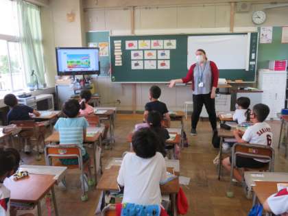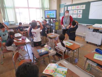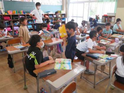 身近にあるいろいろな色を英語で発音しながら見付けました。