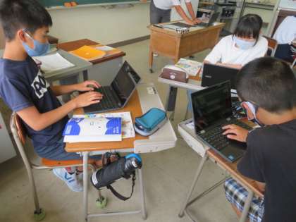「夏を快適に過ごすために、家庭でどんな工夫しているのか、事前に家族の人にインタビューした内容を、PCでまとめ、紹介し合いました。