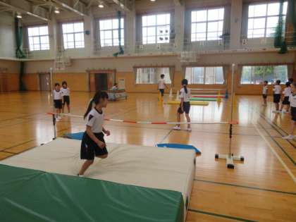 振り上げ足を確かめたり、3歩で踏み切ったりする練習をしました。跳ぶタイミングをつかんできました。