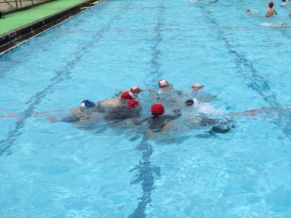 泳力に合わせ「イルカグループ」「メダカグループ」「ラッコグループ」に分かれ、各々の能力に合う練習しています。