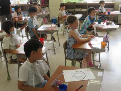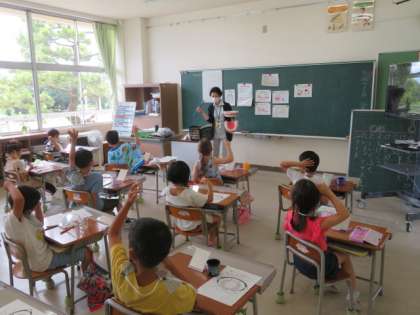 保健の先生に歯の磨き方を指導していただいた後、、歯のカラーテストを行いました。しっかり磨くことができていた人が多かったです。