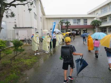 小中合同あいさつ運動が行われました。八幡小卒業した和合中学校の生徒の皆さんが、早朝から小学校に集まり、執行部と共に素敵なあいさつをかわしました。
