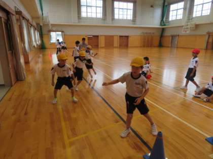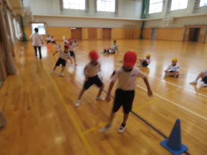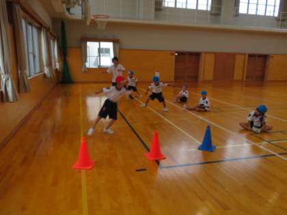 反復横跳びを行いました。前回の体力テストでは、ステップの仕方が上手くいかない人がたくさんいましたが、リズムよく足の運びを確認しながら練習したおかげで、とても上手になりました。記録も大きく伸びました。