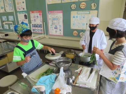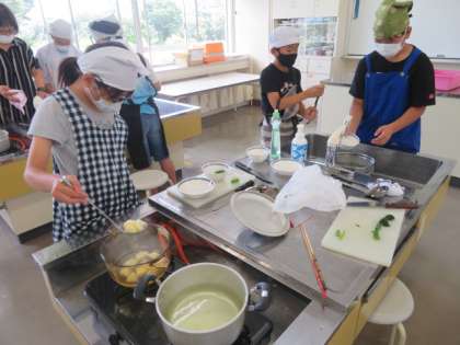 味付けや盛り付けも丁寧に行い、とても美味しく出来上がりました。来週の宿泊学習で行う野外炊飯も楽しみです。