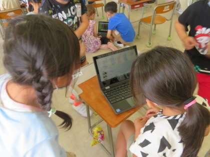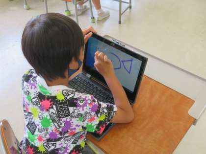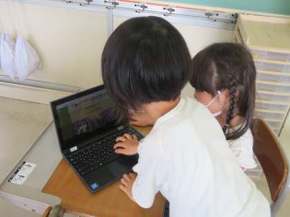 パソコンを触って、使って。1年生も少しずつパソコンに慣れる準備をしています。