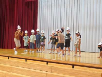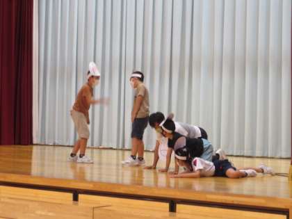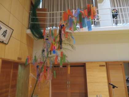 秀峰会執行部を中心に七夕集会を行いました。全校児童や教職員の願い事が飾られている大きな笹は、地域の方に持ってきていただきました。七夕にちなんだ劇は、参加募集をして集まったメンバーで行われ、七夕の伝説を表す楽しい劇となりました。