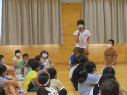 執行部や図書委員会、劇の参加者、短冊の紹介者、集会の感想発表者、なかよしリーダー、そして楽しんで参加した全員等、たくさんの人たちで盛り上げ、つくりあげた素敵な集会でした。