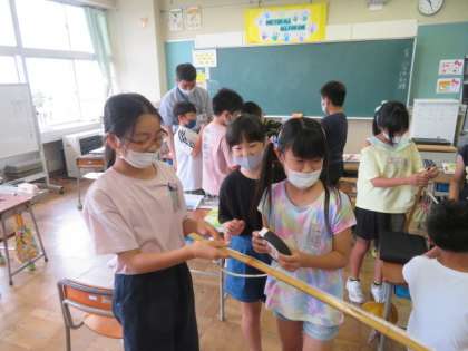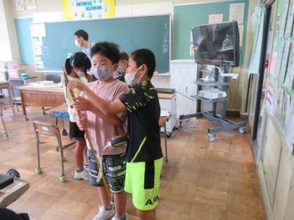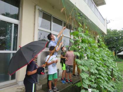 ヘチマのつるがどのくらい伸びたか巻き尺を使って測りました。植え替えた当初は数cmしかありませんでしたが、1ヶ月程で3m近くになりまいた。生きる力は強いです。