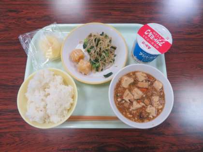 ごはん 麻婆豆腐 にんじんシューマイ ナムル 冷凍リンゴ ヨーグルト