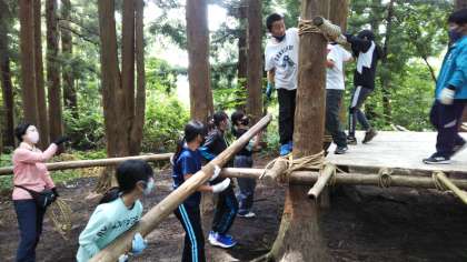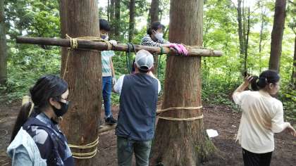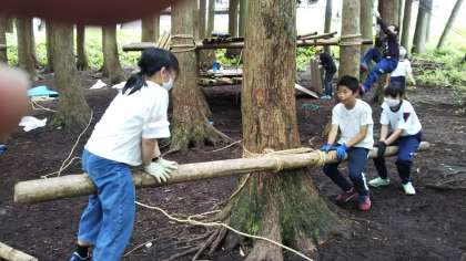 午後からは、森小屋づくりの続きです。各班、アイディアがたくさん浮かんできました