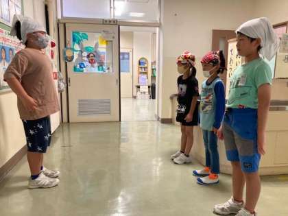 高学年が宿泊学習で不在の中、中学年がリーダーとなって縦割り活動を行っています。