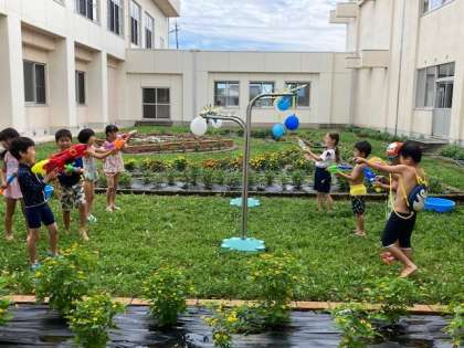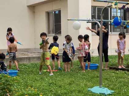 1年生は、水鉄砲を使って的当てをするなど、思い切り夏を楽しみました。