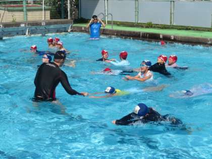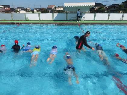 3・4年生は、2回目の水泳教室です。それぞれのコースに合う練習方法で、正しいけのびや息継ぎの方法などを教わりました。気持ちよく泳ぐことができました。
