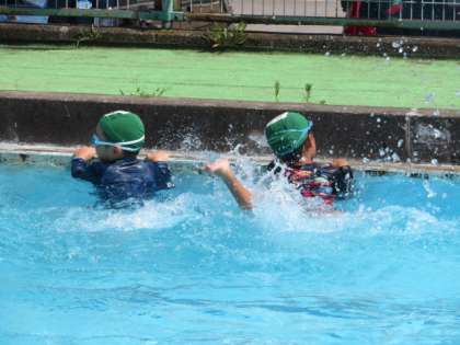 本日の水泳学習、最後を飾るのは2年生。だるま浮きが10秒以上できたり、バタ足で5m進んだり、強く足でキックできたりと、できることが増えてきました。