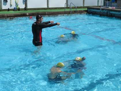 高学年は初めての水泳教室。水の中での動きやいろいろな泳ぎ方まで、たくさんのことを教わりました。以前よりも泳ぎ方が上手くなりました。