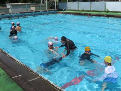 高学年は初めての水泳教室。水の中での動きやいろいろな泳ぎ方まで、たくさんのことを教わりました。以前よりも泳ぎ方が上手くなりました。