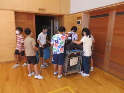 早速、5・6年生は、始業式後の体育館の後片付けを、進んで行いました。さすがです。