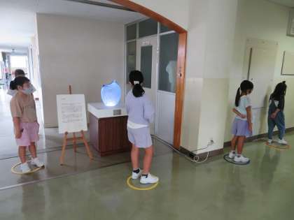 全校児童の視力測定を行いました。間を空け、おしゃべりをせず静かに行っています。