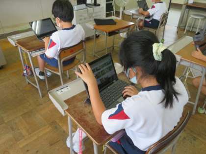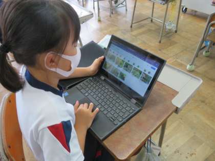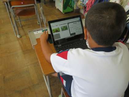 毎日お世話を続けてきた大豆が大きく成長しています。「収穫はいつ頃?」「どんな被害に気を付けなくてはいけないのだろう?」PCで、気になることをたくさん調べています。