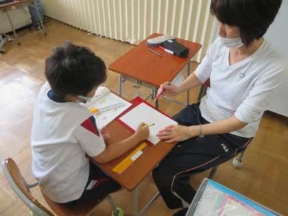 集中して計算に取り組んでいます。1時間の課題も確実にやり遂げています。