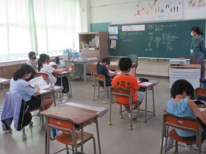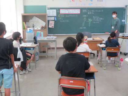 理科専科の先生の授業も始まりました。ヘチマの雄花と雌花の花のつくりと受粉の関係について学習しています。