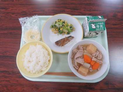 今日の献立は ご飯 大根の味噌煮 鰯のショウガ味 コーン和え 冷凍パイン 牛乳 でした。
