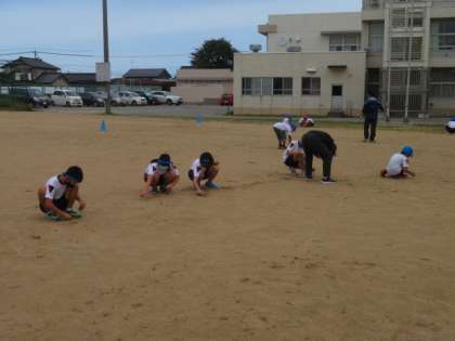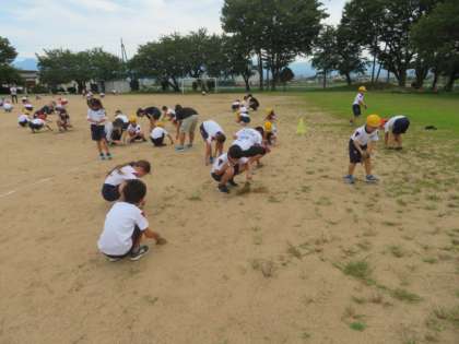 グラウンドを走った後は、全員でグラウンドの草を取りました。少しずつグラウンドのの土が元に戻りつつあります。