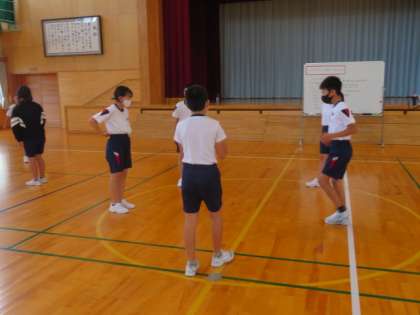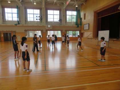 各グループごとに、音楽に合わせた踊りを考えて試しています。