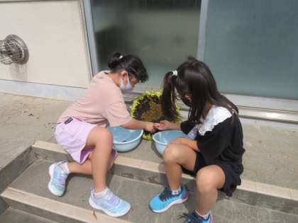 夏の間大きな花を咲かせていたひまわりの種を採りました。数え切れないほどの数の多さに驚きました。