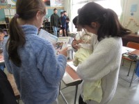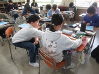 自分が考えた「ゆで野菜サラダ」のレシピを紹介し合いました。材料や切り方、見た目など、一人一人の特徴が表れています。