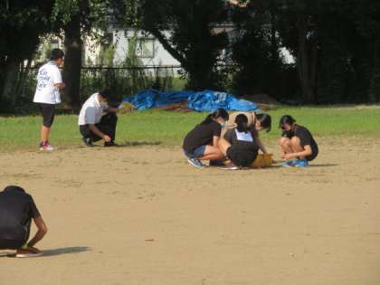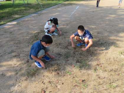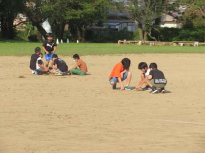 今朝も、グラウンド草むしりボランティア隊が活動中です。