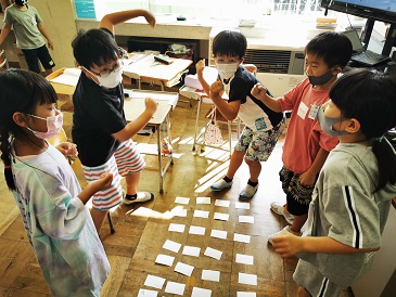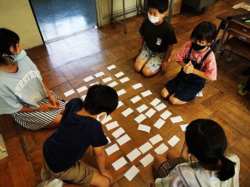 漢字のへんとつくりについて学習しました。最後に、各班でへんとつくりの漢字カードを手作りし、神経衰弱をしました。