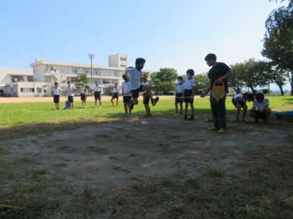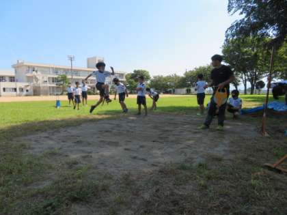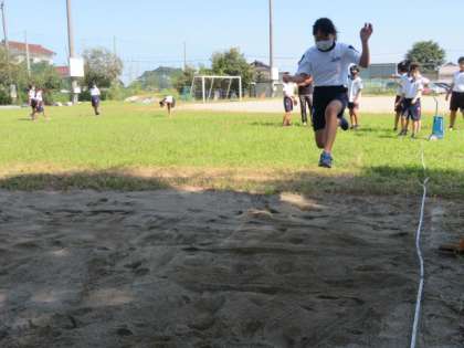 助走のスピードをつけ、力強く高く踏み切り、両足で着地すること心がけ、練習しています。