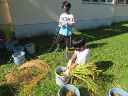 9月21日(火) 5年「バケツ稲の稲刈り」2