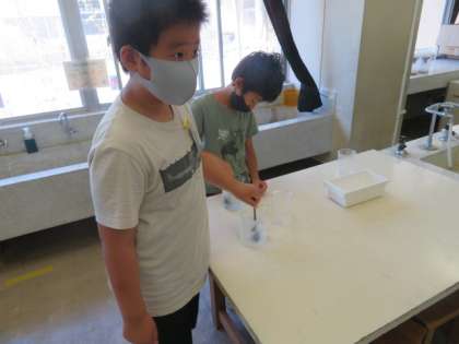 空気中の水蒸気を冷やすと、水に戻るのかを実験しています。結果はどうだったのでしょうか。