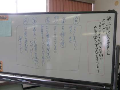 昼休憩に代表委員会が開かれ、学習発表会のめあてについて話し合いました。話し合った結果を運営委員会がまとめています。