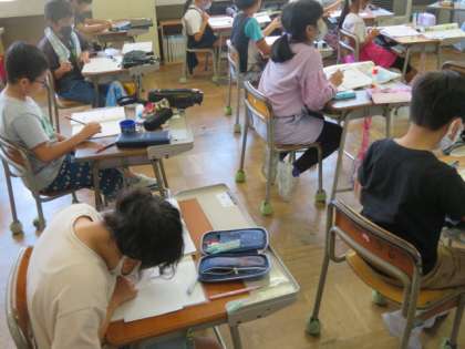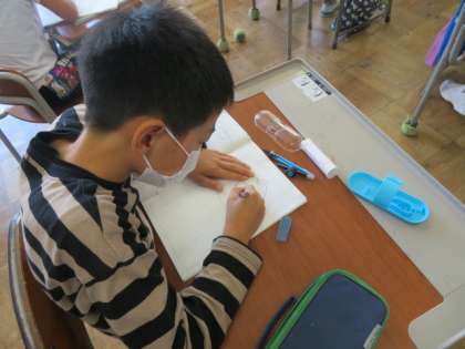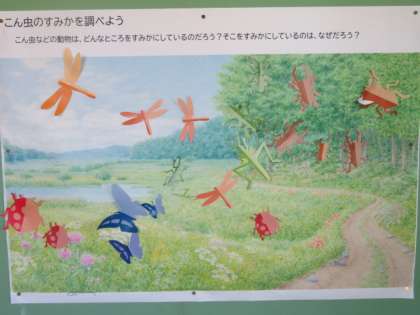 こん虫の体のつくりは「頭」「胸」「腹」に分かれていることを確かめています。昆虫博士の多い3年生にとって、「当然」の話かもしれません。